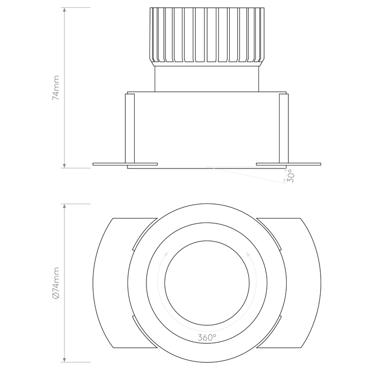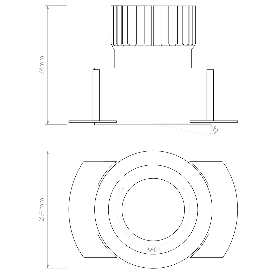 The Astro Trimless Round Adjustable LED is a recessed, trimless downlight designed to be installed before plastering, offering a seamless ceiling aesthetic with directional lighting flexibility. Its adjustable head allows 30° tilt and full 360° rotation.