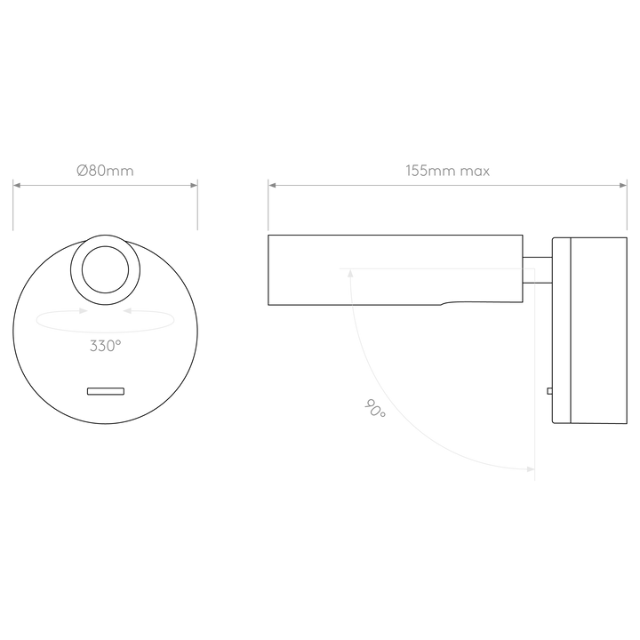 - Material: Aluminium body with round backplate and cylindrical LED head