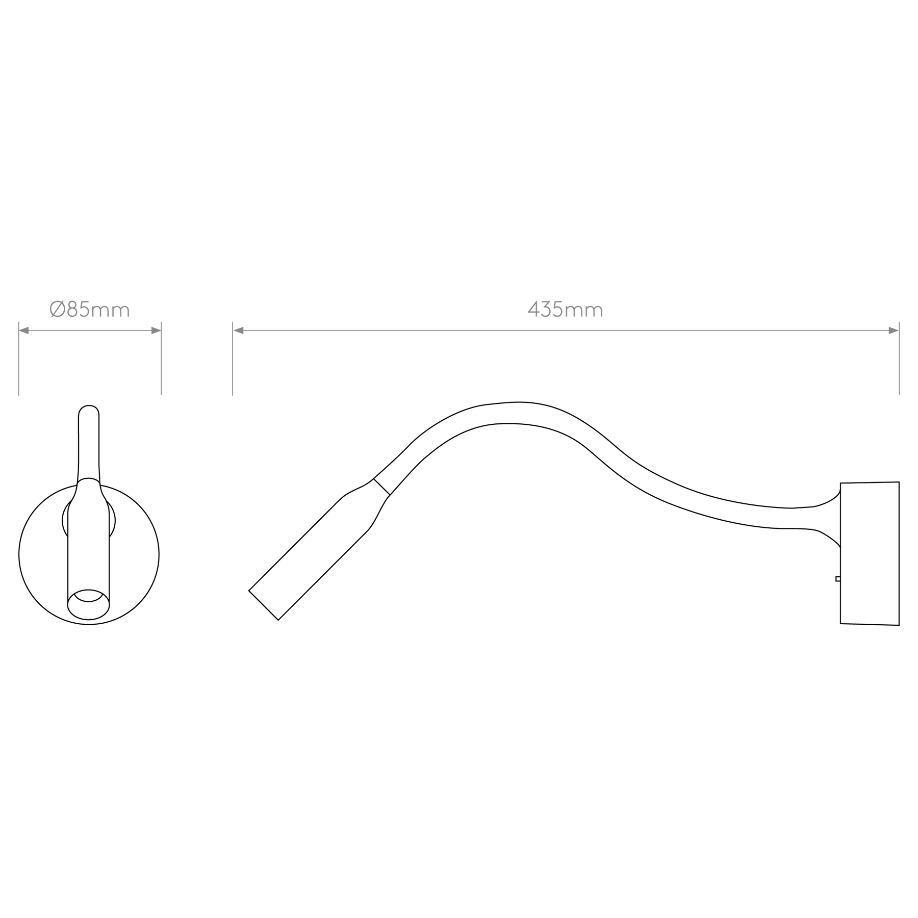 • Material: Zinc and steel body; flexible matt‑black silicone arm; matt‑black bezel