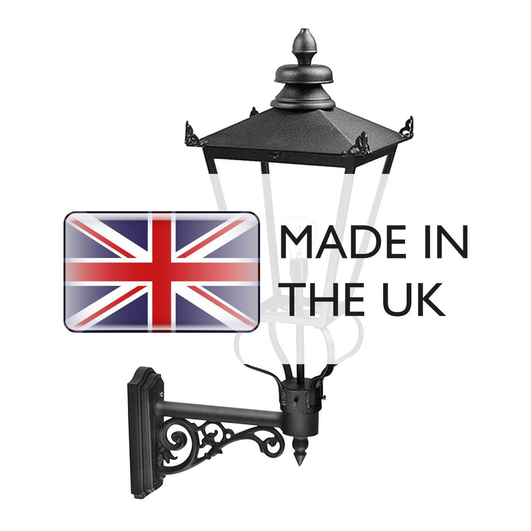 Wilmslow wall light is an elegant Victorian style lamp suitable for both domestic and commercial environments. It is made predominantly of cast aluminium. Supplied in Black finish with clear glass panels. IP23 rated and made in the UK.