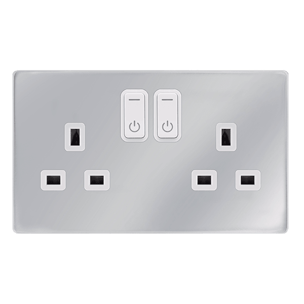 Click Smart+ Definity 13A Double Gang RF Smart Socket in Chrome & Pearl White