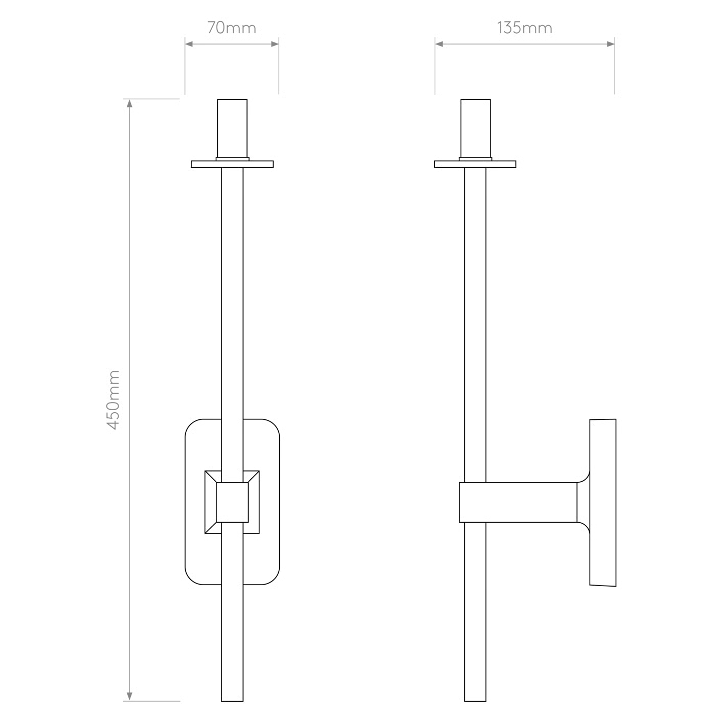 Profile shot showing the 450 mm drop and 70 mm width of the fixture