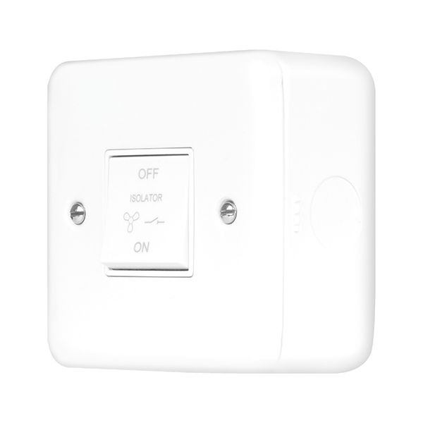 Polar White Industrial Wall Fan Isolator Metal Clad Pro 10A 3 Pole Fan Isolation Switch MCP020PW