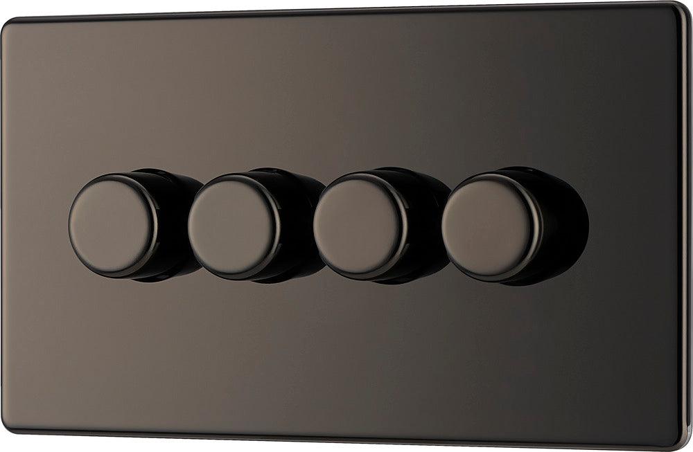 Screwless Flatplate 400W Quadruple Dimmer Switch, 2-Way Push On/Off - Prisma Lighting